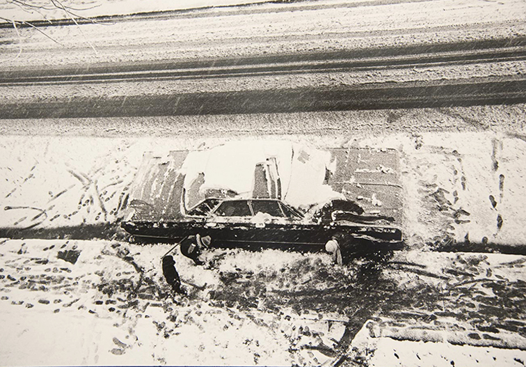 »Trompe-l’œil« nennen die Franzosen eine »Täuschung des Blickes«. Ein fotografischer Meister dieser Kunst ist der Kanadier Serge Clément. Auf seinem Foto glaubt man, die Silhouette eines Autos zu sehen. Befremdlich wirkt das Umfeld. Beim Nähertreten ändert sich langsam die Wahrnehmung. Auf den zweiten Blick sieht man immer noch ein Auto. Doch plötzlich ist es keine Silhouette mehr. Es ist eine Draufsicht des Autos, langsam sichtbar werdend in einem Spiel mit dem Schnee und dem Befreien und Freilegen des Fahrzeugs von Schnee und Eis … Wer es nicht erkennt, mag auf das Foto klicken. Der zweite Blick offenbart sich spätestens beim zweiten Klick … (vss.).